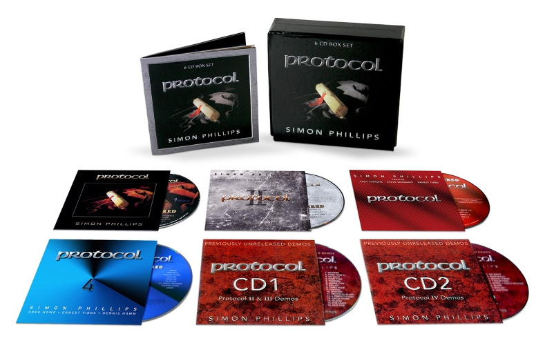 Drum legend Simon Phillips will be releasing a 6-CD box set on April 12th on Phantom Recordings. This truly deluxe set celebrates the 30th Anniversary of Protocol, the powerhouse jazz-rock vehicle for the music of legendary drummer Simon Phillips (Jeff Beck, Toto, The Who, Mike Oldfield, Hiromi). Included are all of the previous Protocol releases (I, II, III & IV), re-mastered for an even better sonic experience. Plus two full CDs of previously unreleased demos, with the embryonic tunes that would later become finished material for the Protocol II, III & IV albums. Protocol 4, included, was nominated for a Grammy in 2018 for Best Contemporary Instrumental Recording.