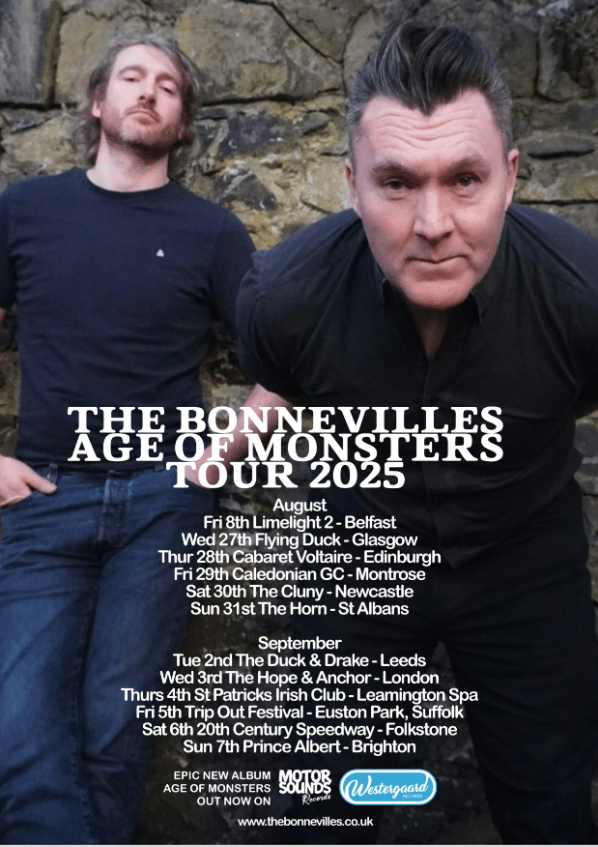 Norn Irish [unk blues rockers, The Bonnevilles, are heading out on tour in support of their new album, “Age Of Monsters”, which is out on 12th July. Dates below;