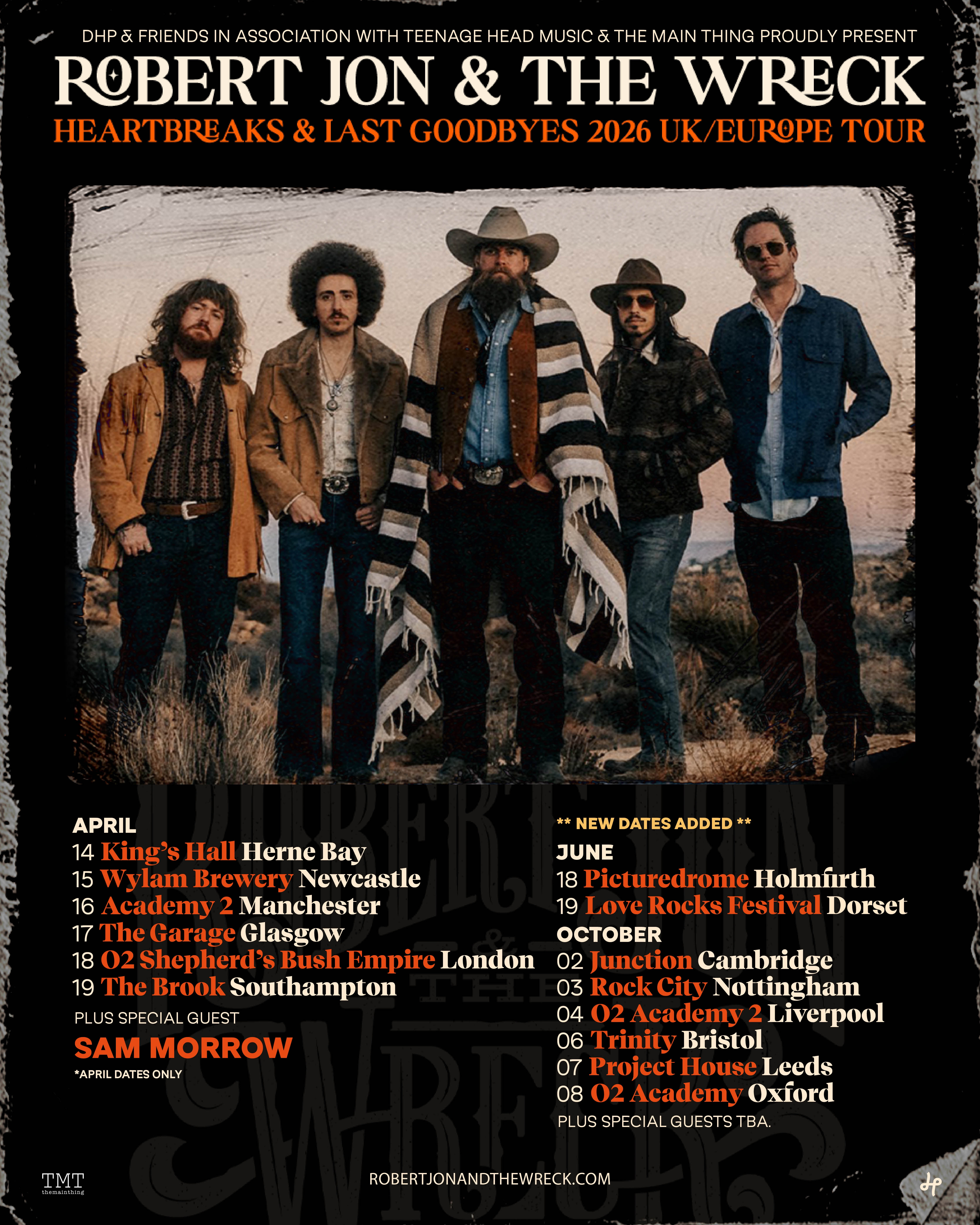 Hot off the heels of the release of their latest single “Put Your Money Where Your Mouth Is,” critically acclaimed Southern Roots Rock band Robert Jon & The Wreck are pleased to announce the second leg of their 2026 UK Tour. In addition to their April 2026 UK tour dates featuring special guest Sam Morrow, the band will return to the UK in June and October to perform more concerts.